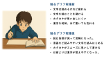 2025年9月25日 / 最終更新日時 : 2025年9月25日 miyazaki 未分類 英語圏のディスレクシアの子どもを支えるために ― 科学的に効果がある方法 ディスレクシアの子どもを支えるために ― 科学的に効果がある方法 以下の内容で、ChatGTPにディープリサーチしてもらいました。英語圏のディスレクシア児童に対するアプローチの有効性に関する現状ですが、日本 […]