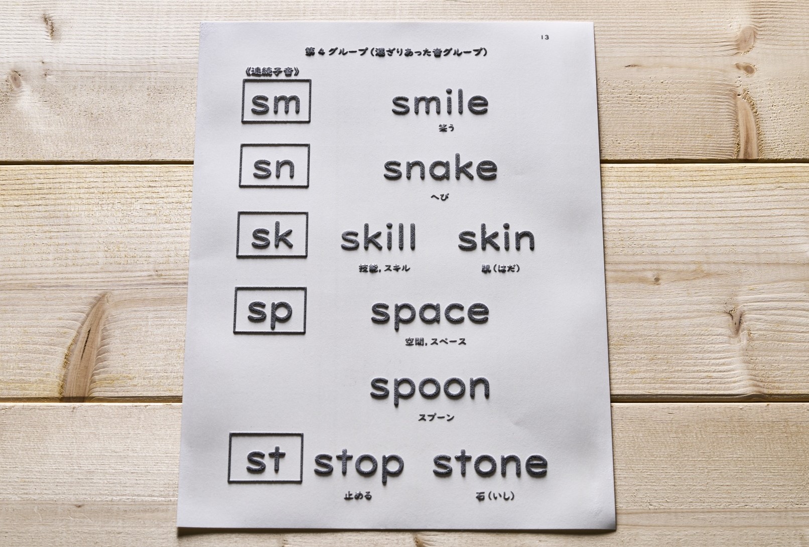 この問題を解決する為に、触るグリフでは、フォニックスの規則に基づいて、手で触れる触覚刺激を認知的な手がかりとして、英単語の「スペルと読み方」の結びつき(連合記憶)を形成します。