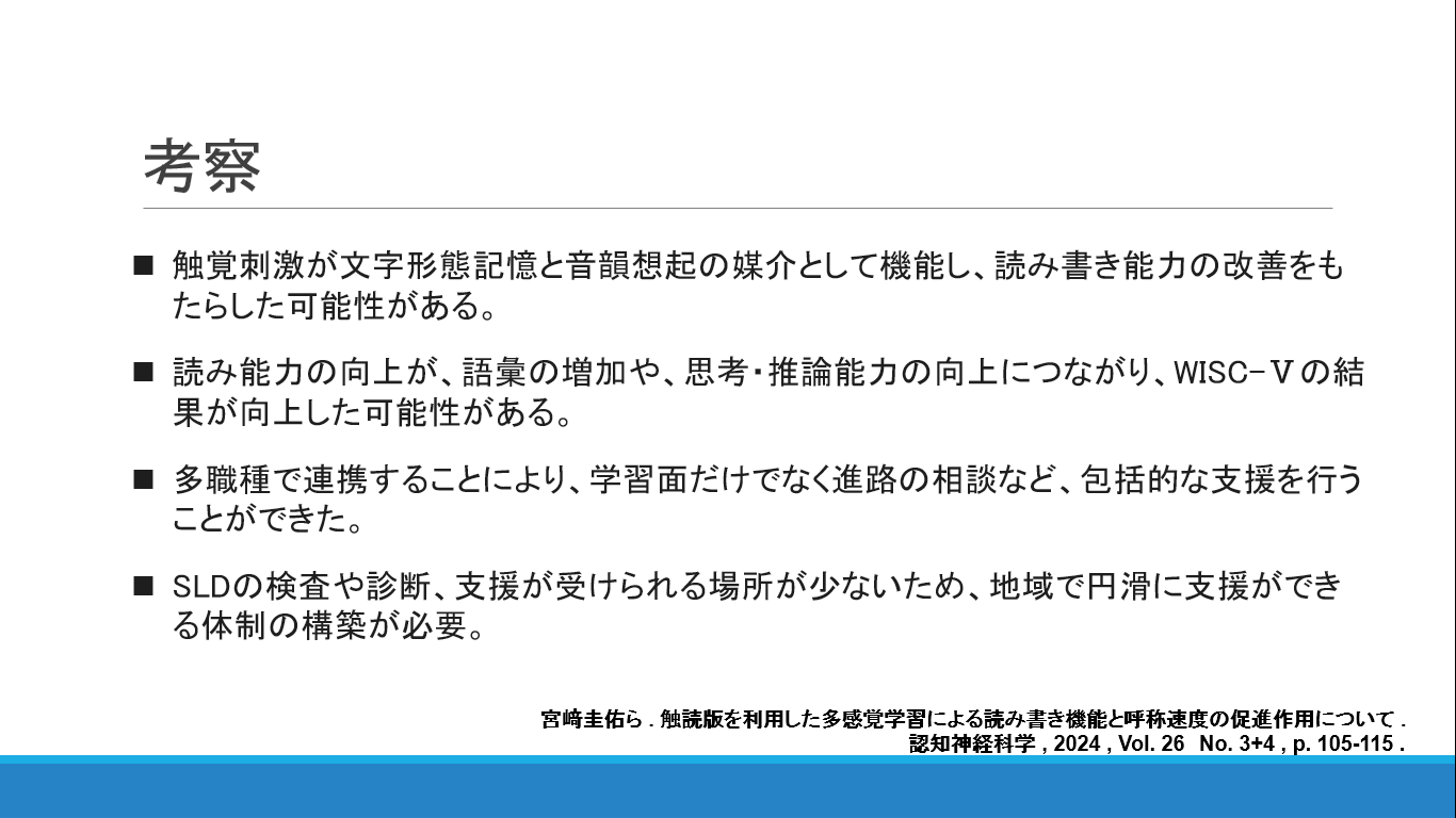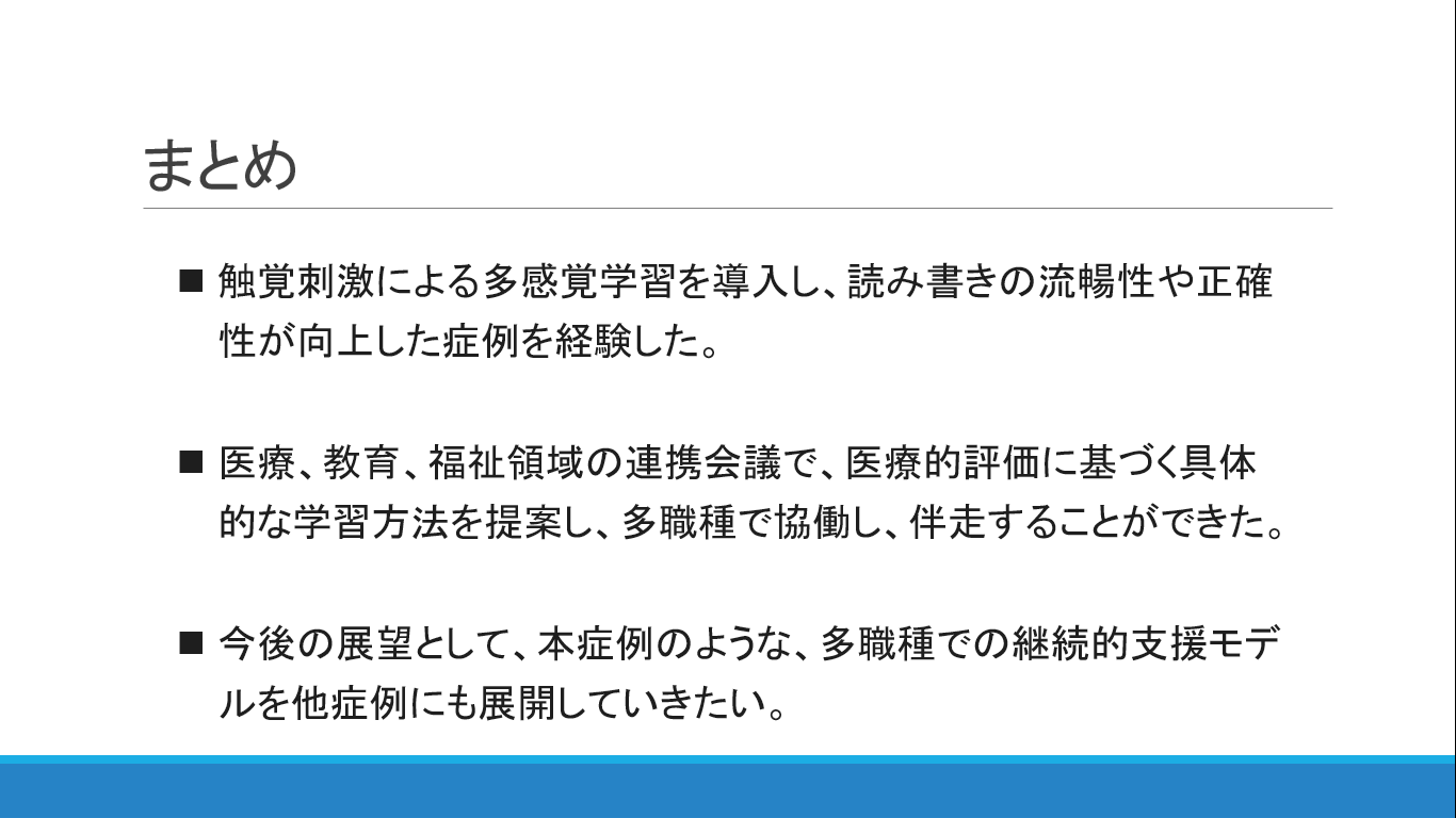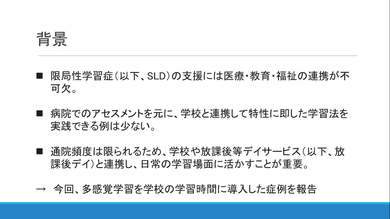 第134回 日本小児神経科学会発表 「多職種連携により学習支援として多感覚学習を導入した限局性学習症の一例」
