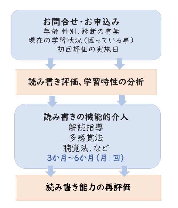 • 3ヵ月~6ヵ月後に、再評価して読み書き能力の変化を調べます。